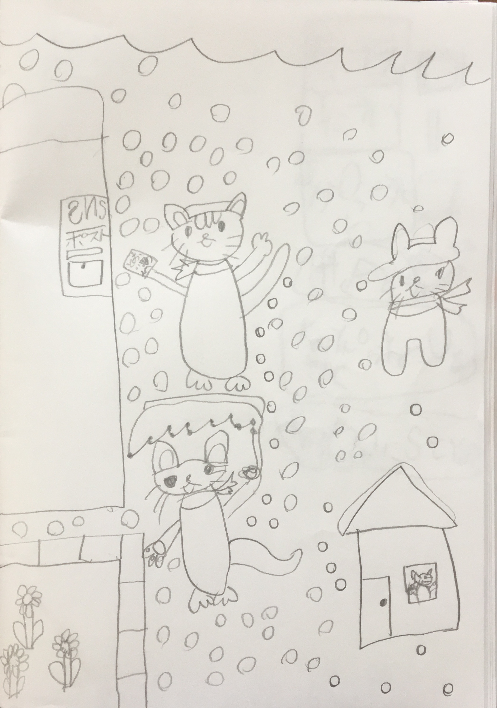 kちゃんの”とおい国”のイメージは、動物たちがたくさん住んでいる寒い雪国。
