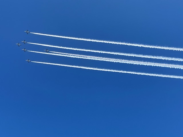 ブルーインパルスの華麗で圧巻の飛行ショーを見る事が出来ました。
