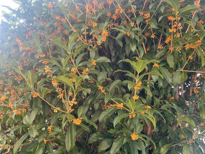 金木犀の花がやっとオレンジ色に染まりました。