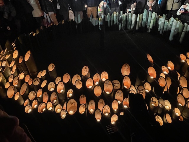 竹灯籠にもロウソクの火を灯して祈りました。